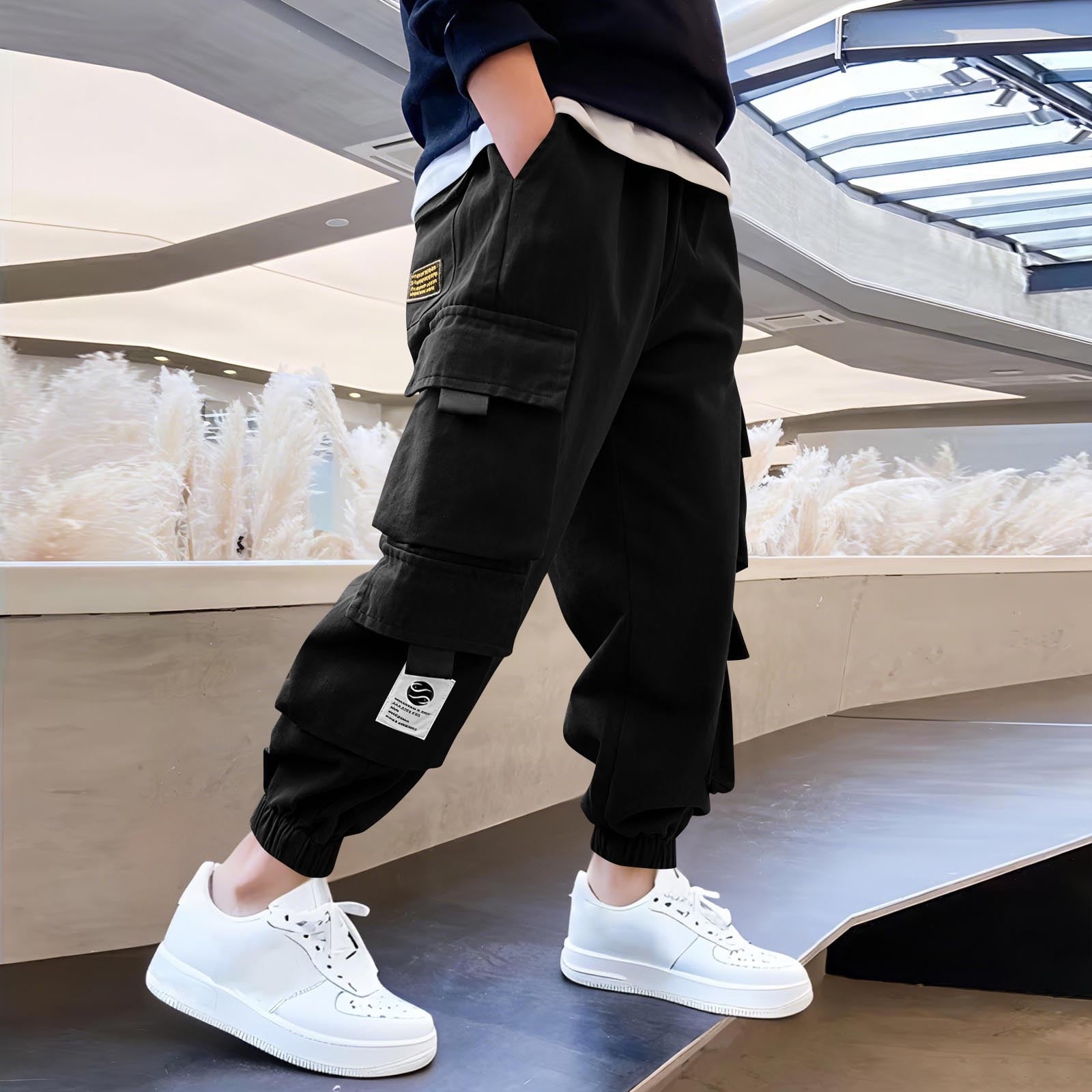 BRGZLK Kids Unisex Cargo Jogger Pants Spring Fall Trendy Solid Color