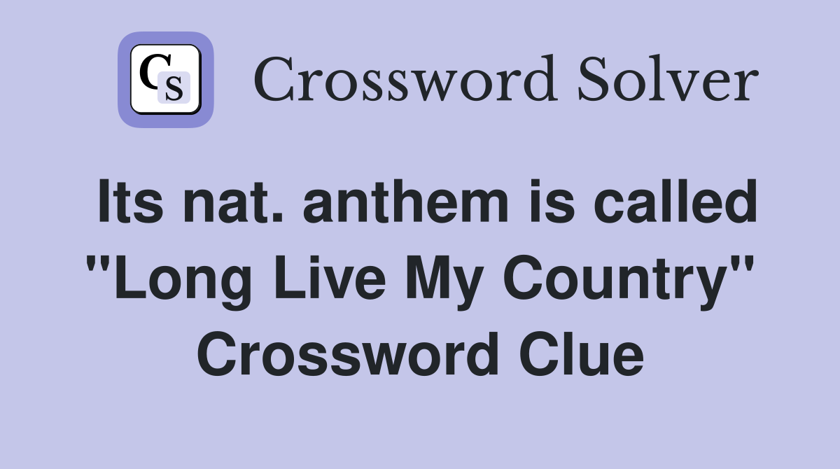Its nat anthem is called quot Long Live My Country quot Crossword Clue
