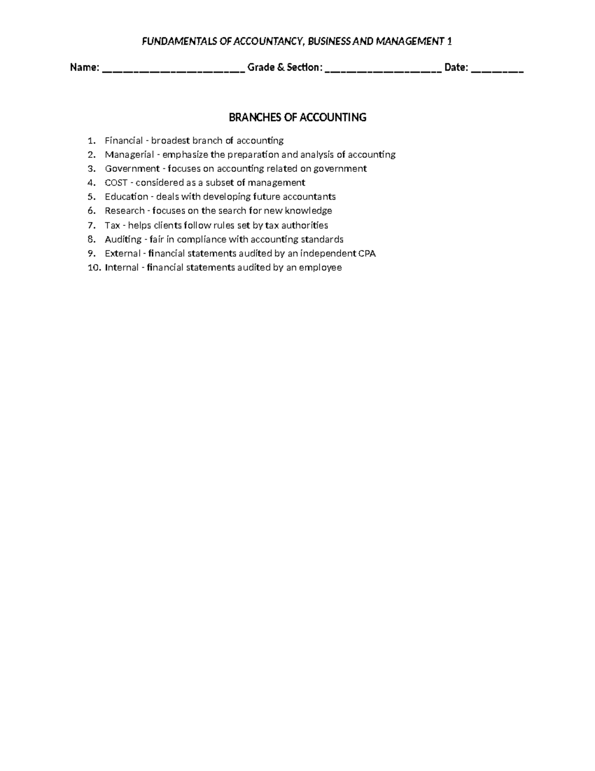 Branches of Accounting Crossword Puzzle ACCT 101 Studocu