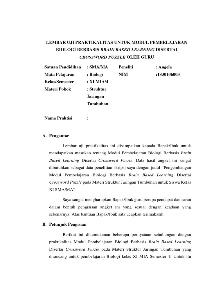 2 LEMBAR UJI PRAKTIKALITAS UNTUK MODUL PEMBELAJARAN BIOLOGI BERBASIS