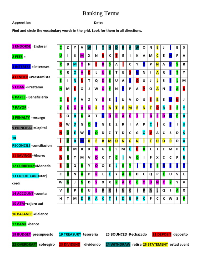In a bank crossword crossword: English ESL worksheets pdf doc