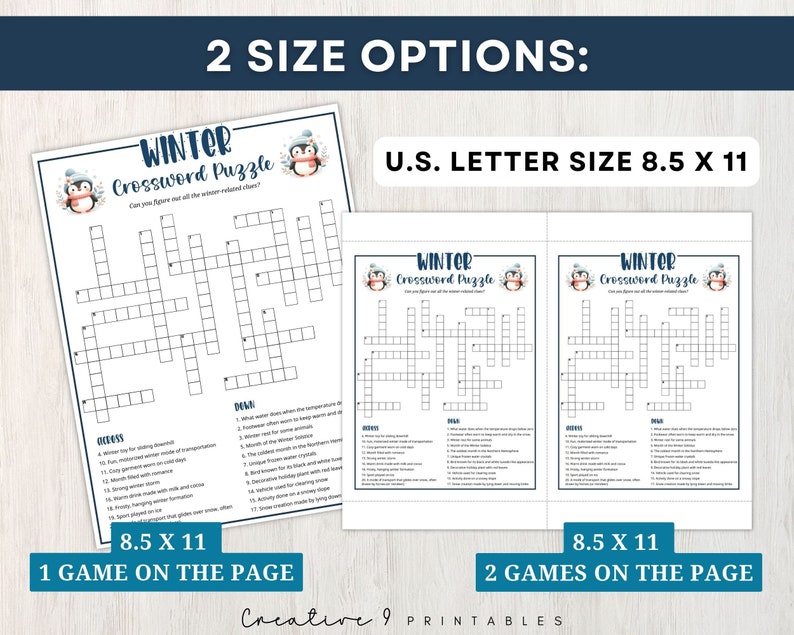 Printable Winter Crossword Puzzle for Kids and Adults Fun Winter Word