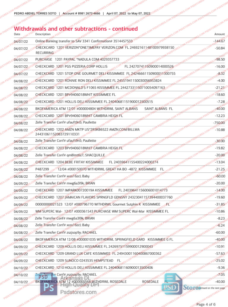 Bank of America Bank Statement Template PSD Stores