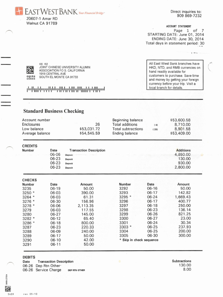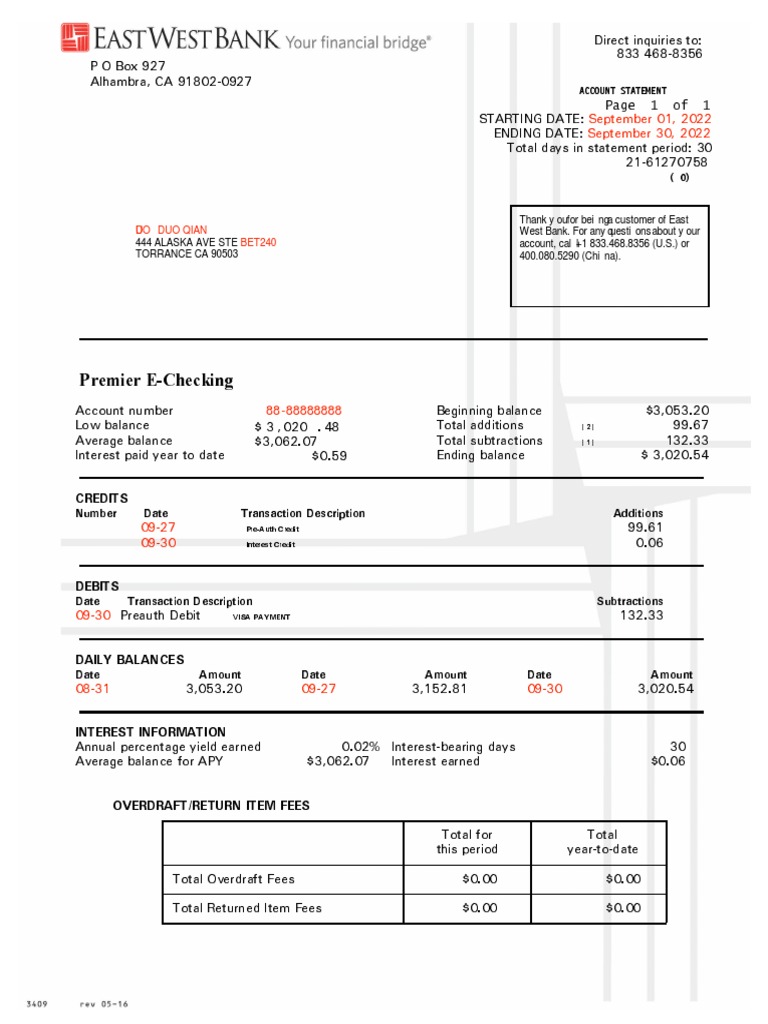 EAST WEST Bank Statement PDF Transaction Account Deposit Account