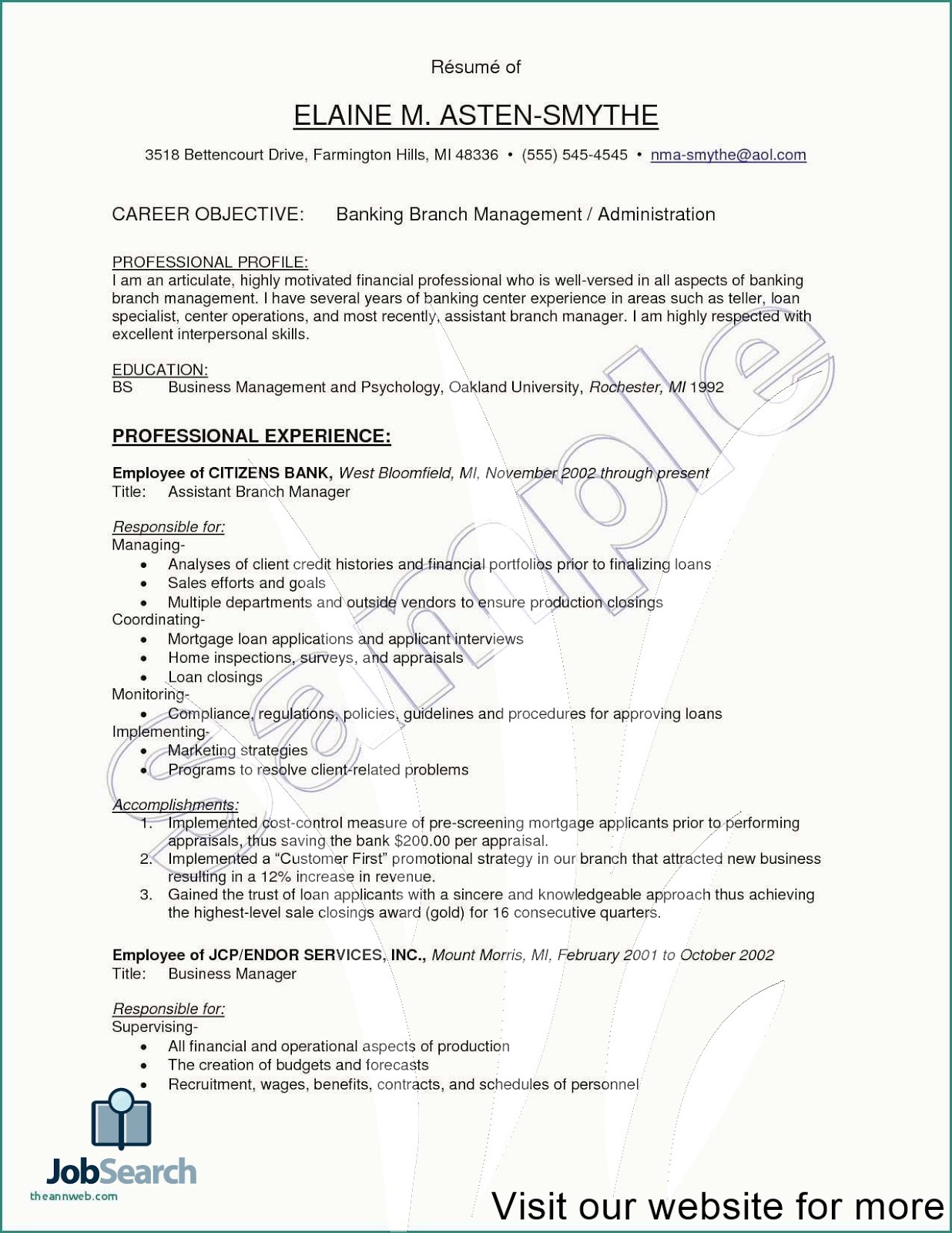 Branch Manager (Bank) Resume Example Writing Guide