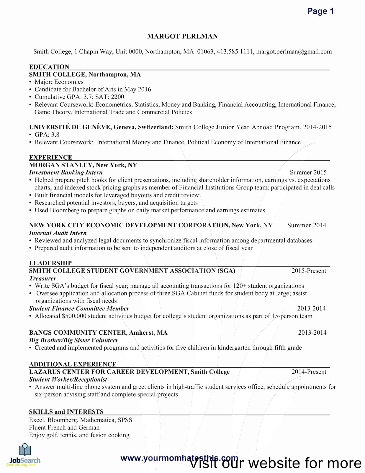 The Ideal Investment Banking Associate Resume Template M I