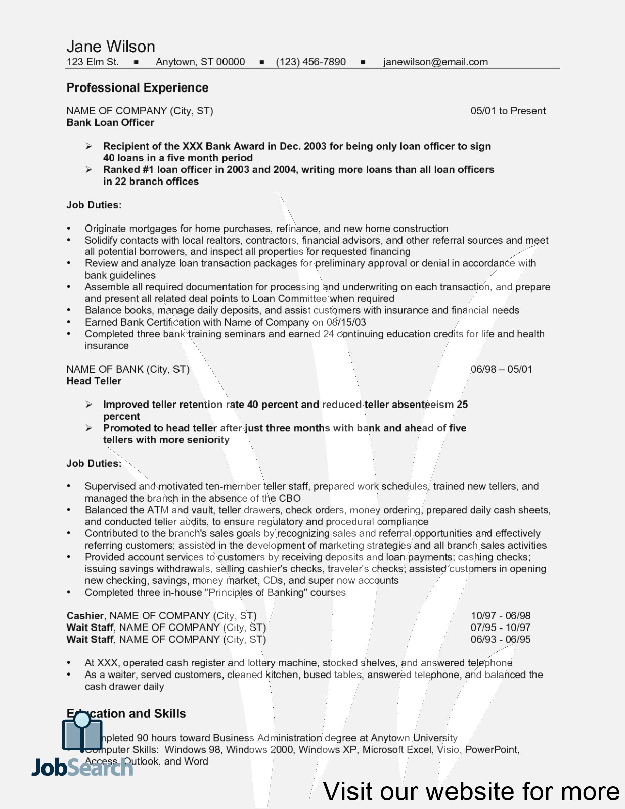 Here are some of the images for Bank Resume Template that we found in our website database.
