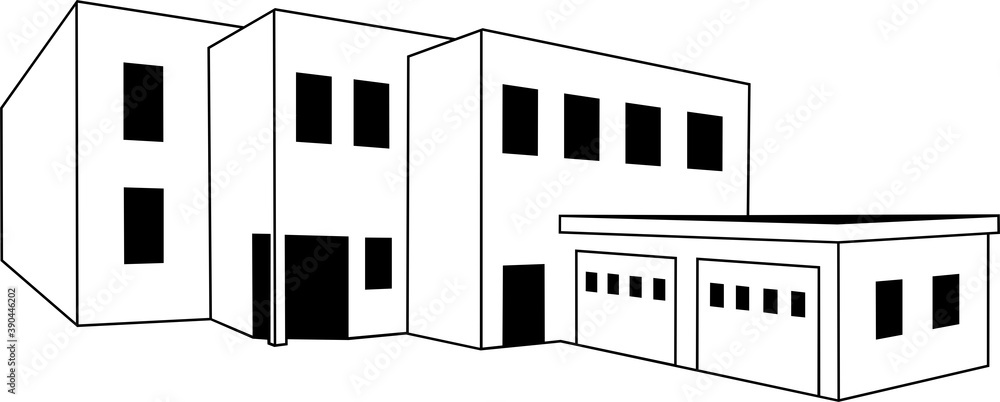A drawing of a warehouse with two doors 51006372 Vector Art at Vecteezy