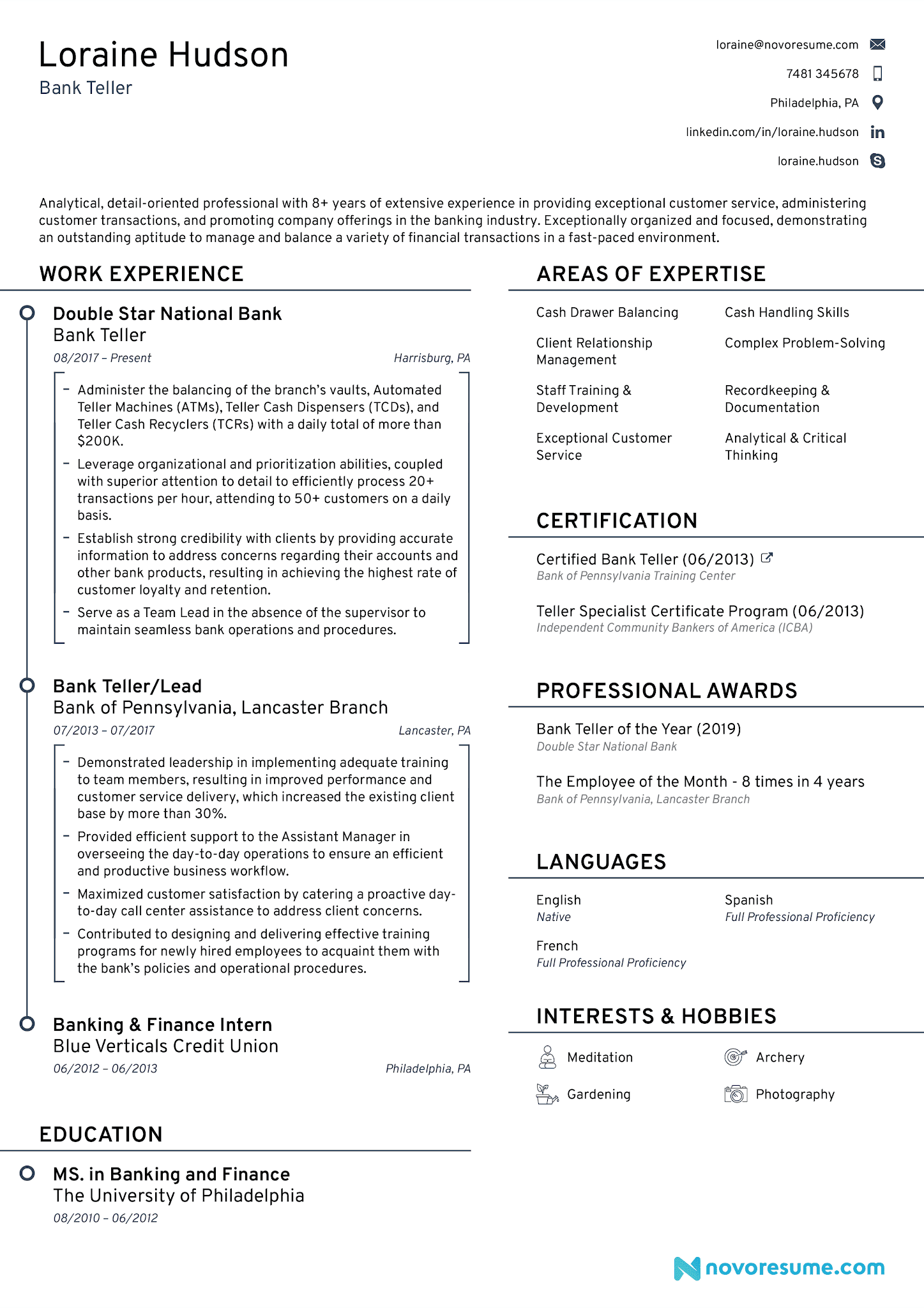 TD Bank Teller Resume Example MyPerfectResume