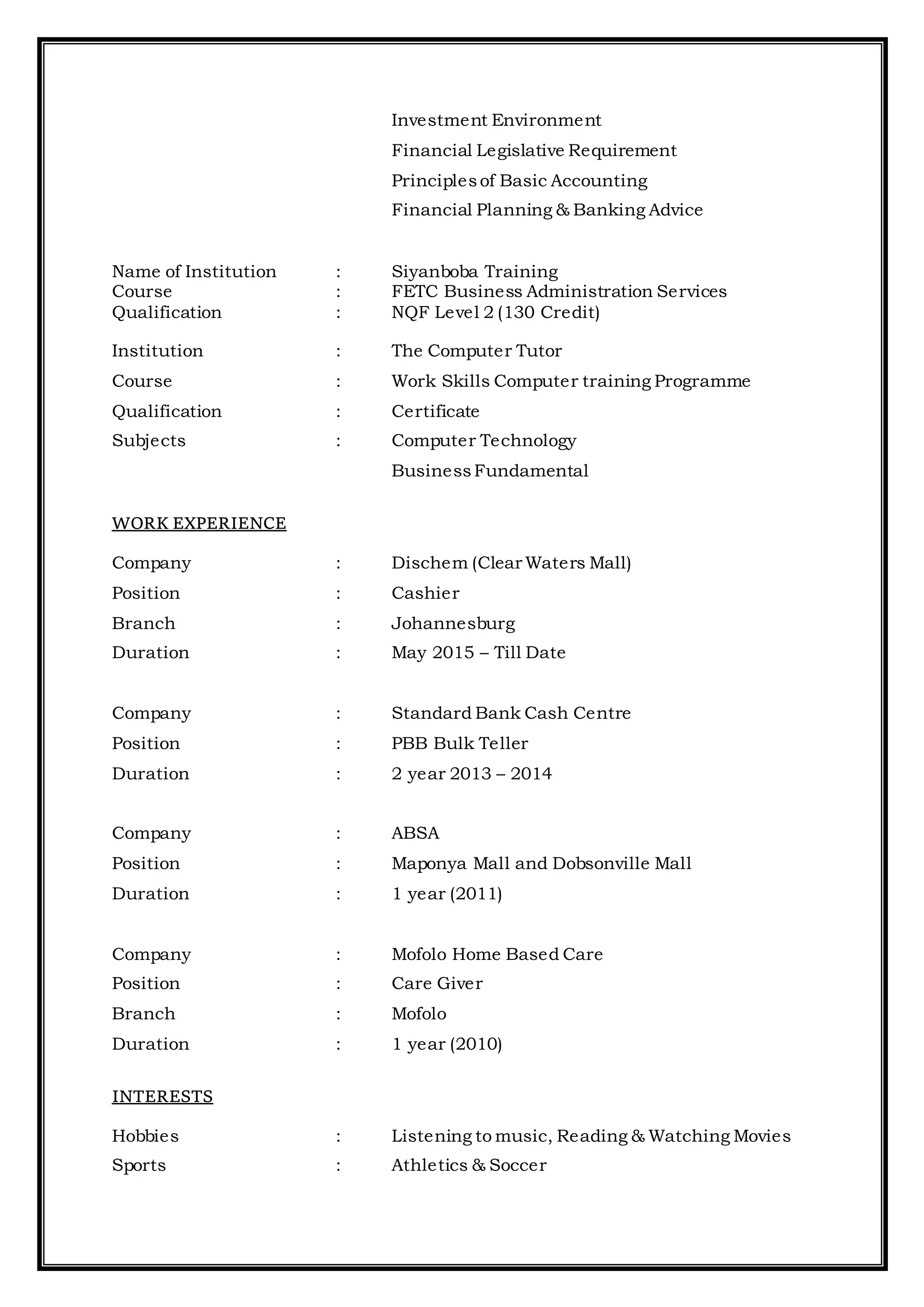 Resumes For Bank Teller ~ Certificate Letter