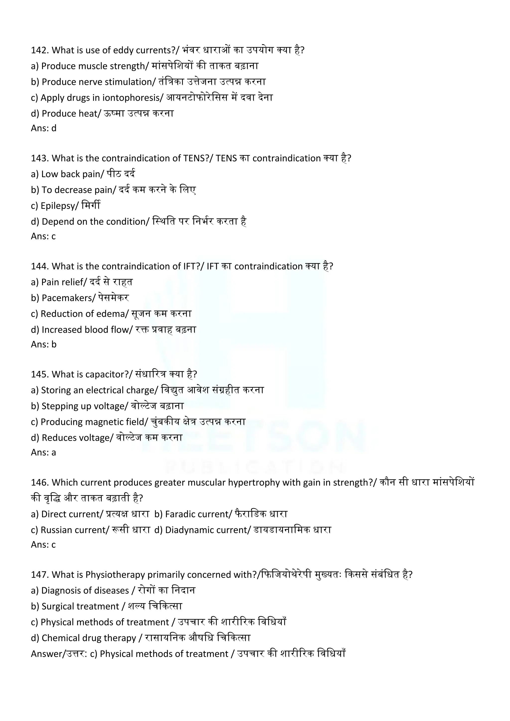 Physiotherapy Technician Question Bank ITI MCQ E Book by Heetson PDF