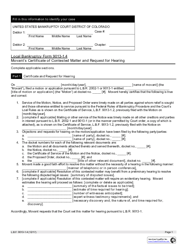 local bankruptcy form 9013 1 4 certificate of contested matter and