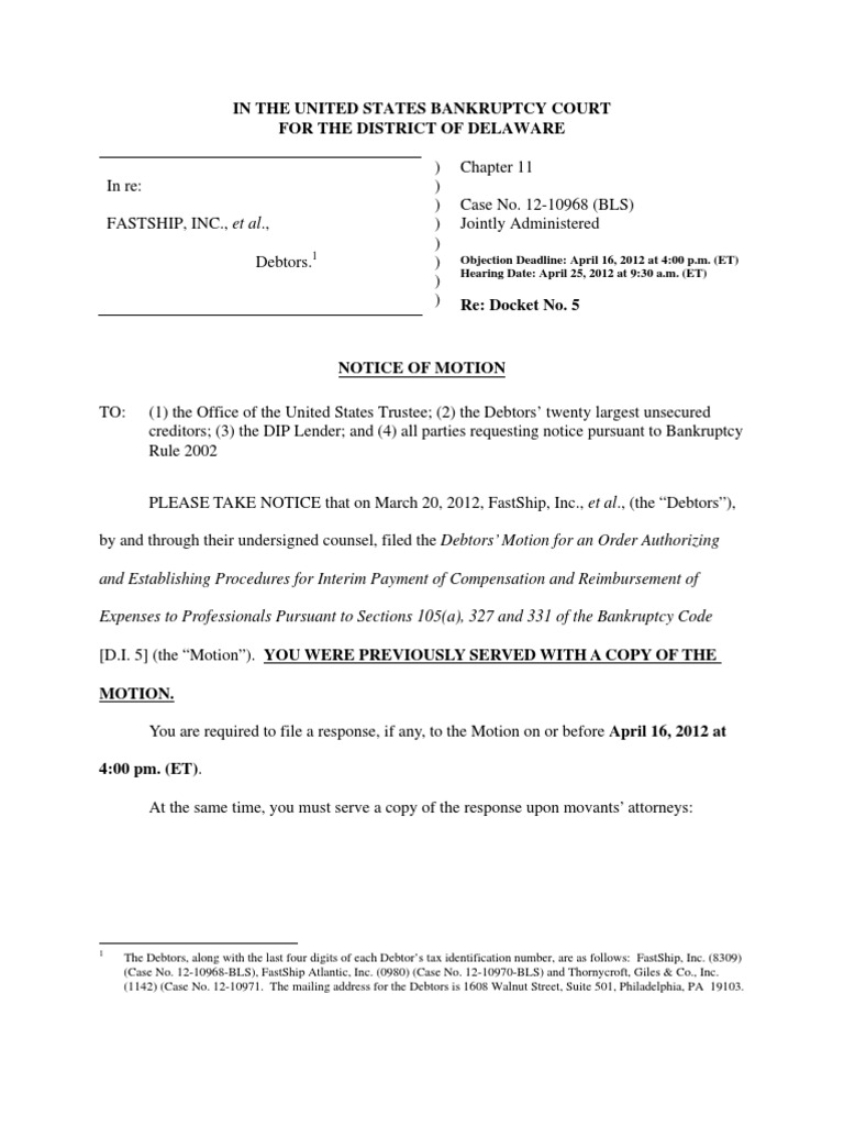 In The United States Bankruptcy Court For The District of Delaware PDF