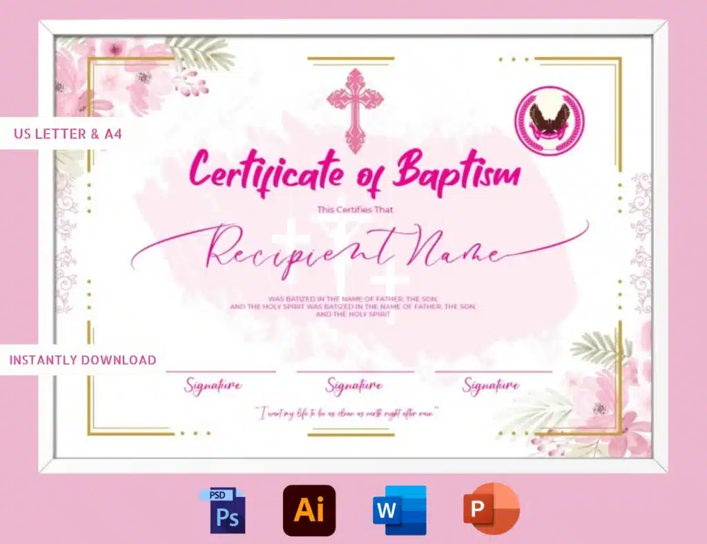 Blessed and professional certificate of baptism template