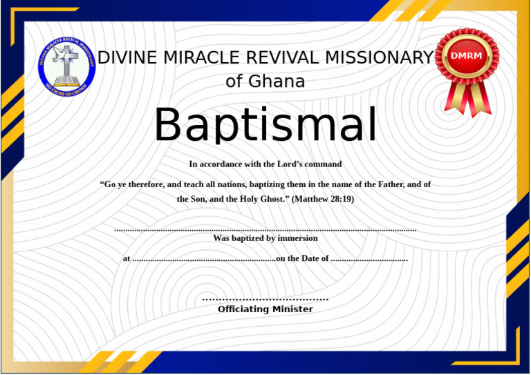 Ceremonial and professional certificate of baptism template