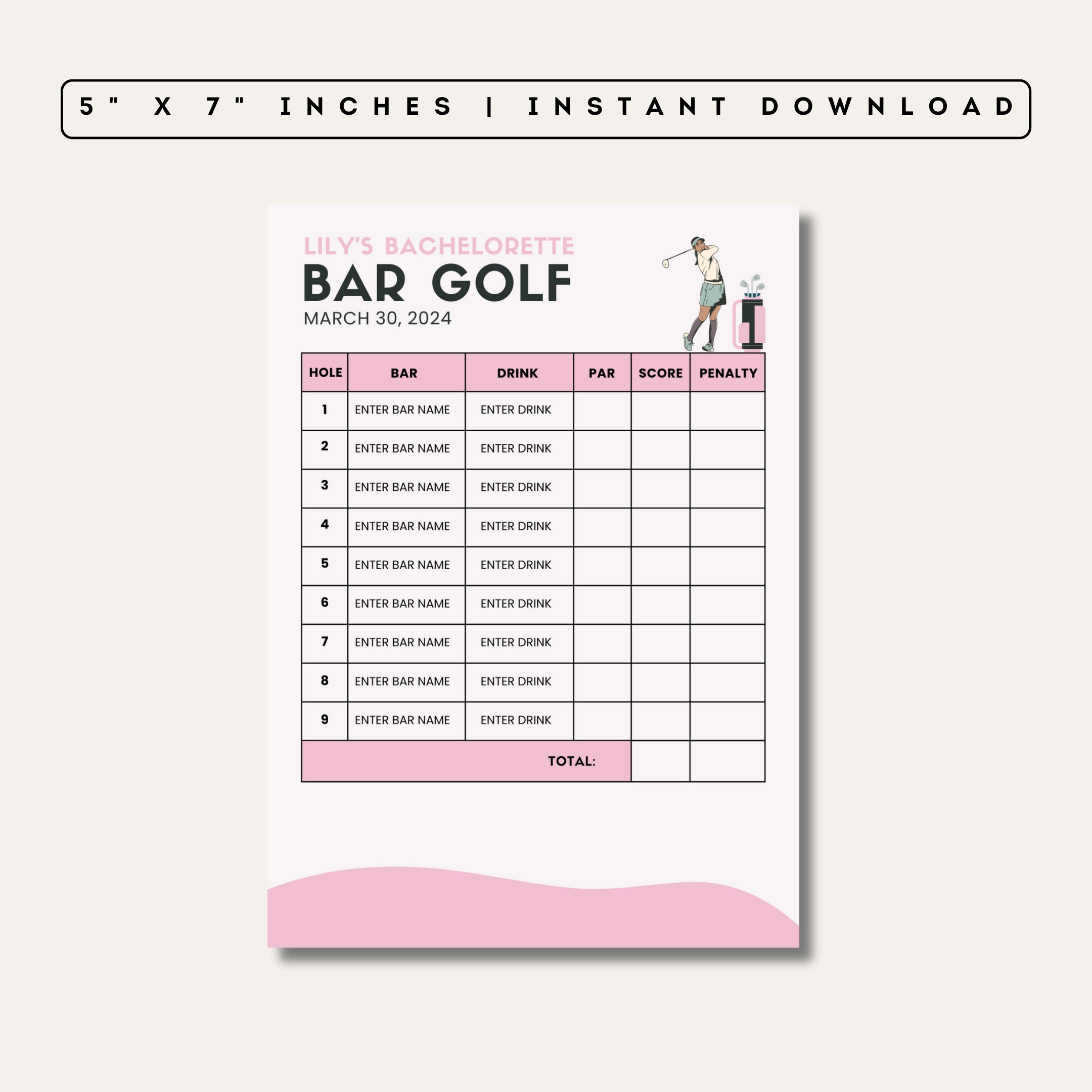 Bachelorette Party Bar Golf Template Etsy