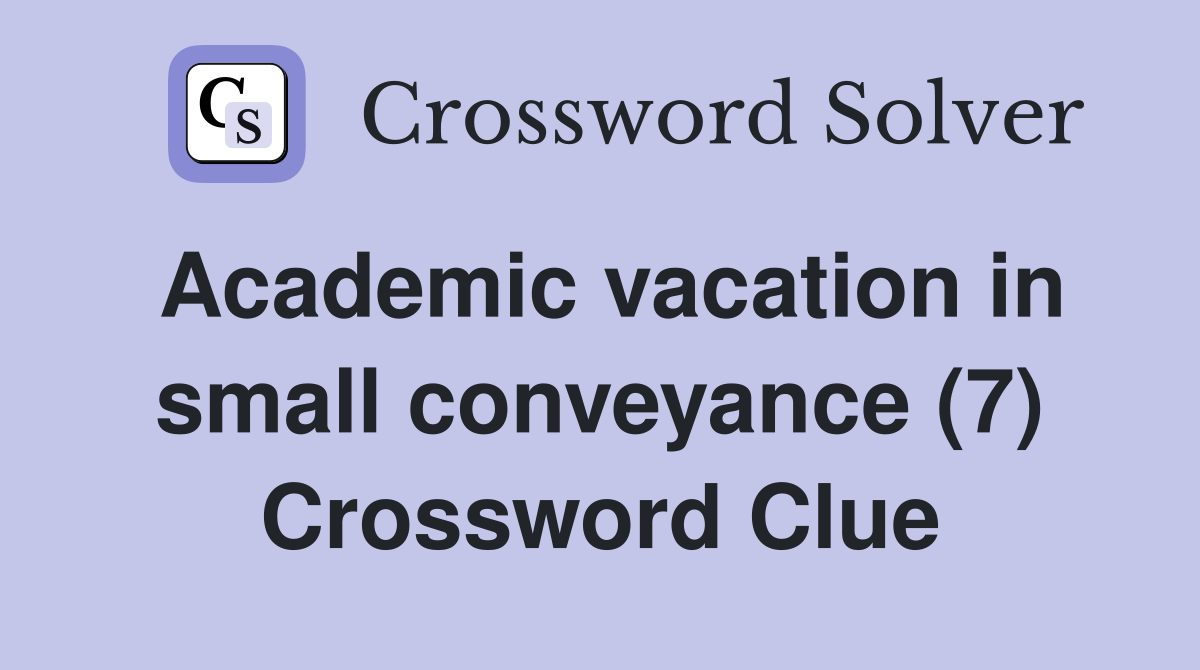 Academic vacation in small conveyance (7) Crossword Clue Answers