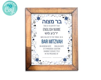 Bar Mitzvah Certificate Rising Star Yeled Etsy