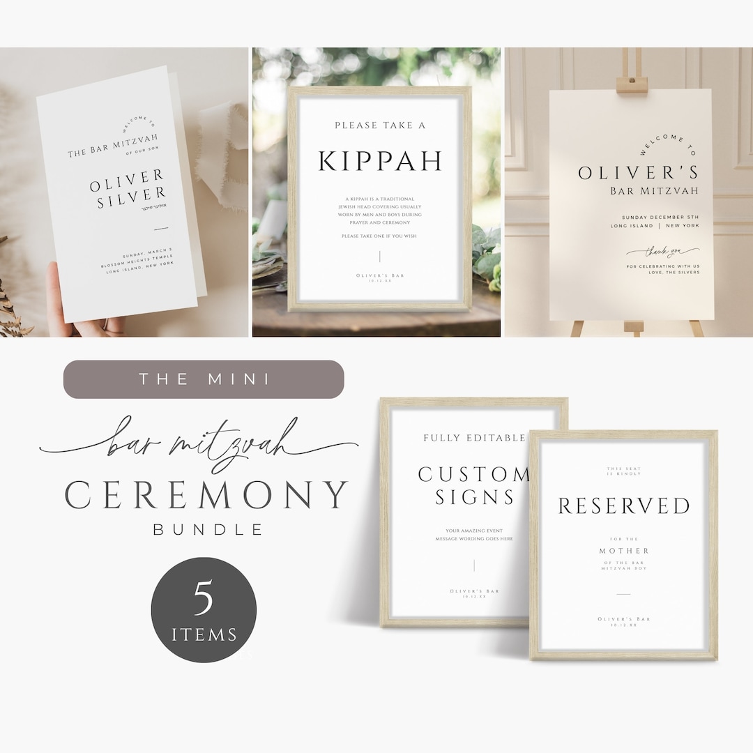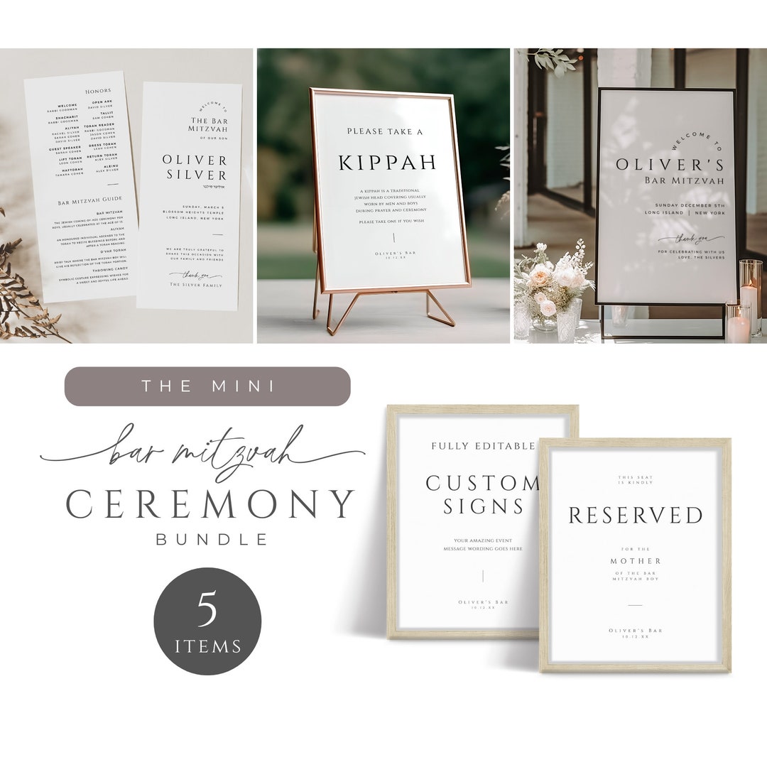 Bar Mitzvah Program Template Bundle Jewish Synagogue Kippah Box