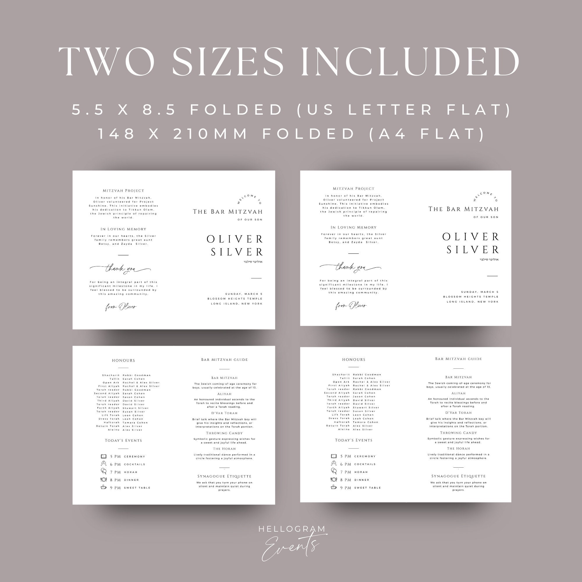 Bar Mitzvah Program Template Editable Folded Minimal A4 Letter