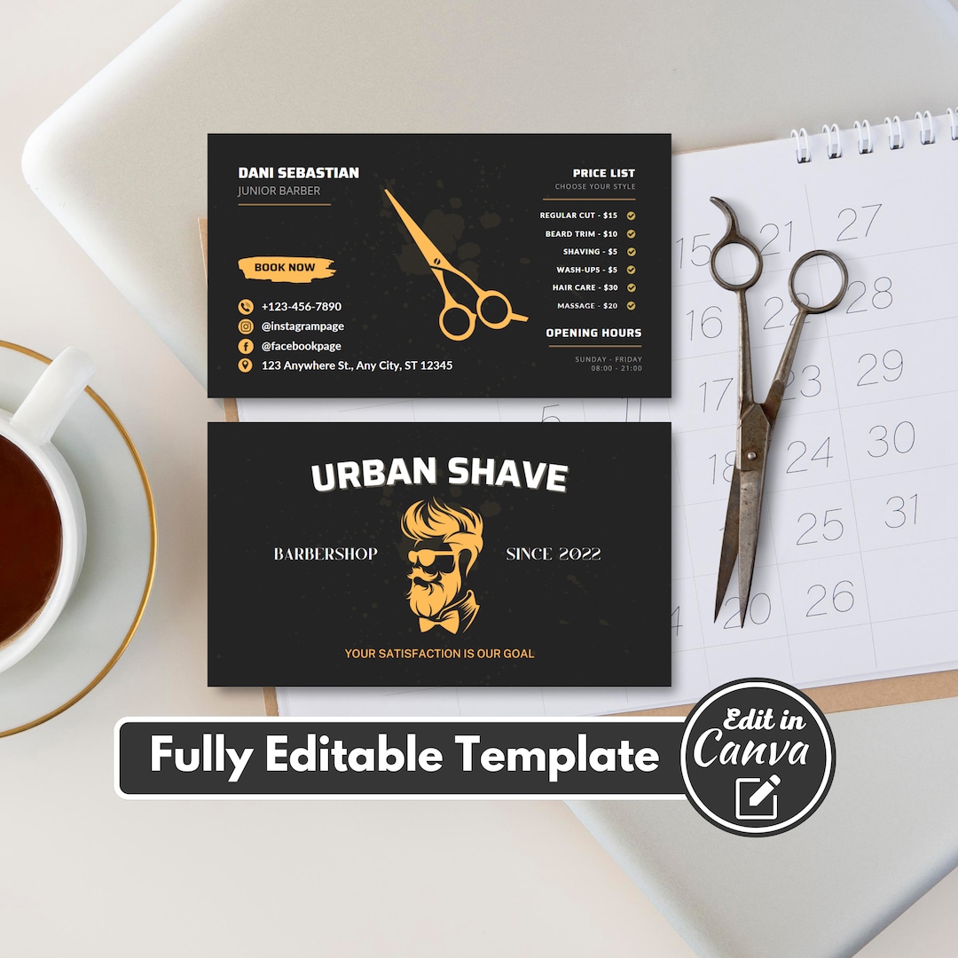 Barber Business Card Template DIY Modern Hairstylist Card Etsy