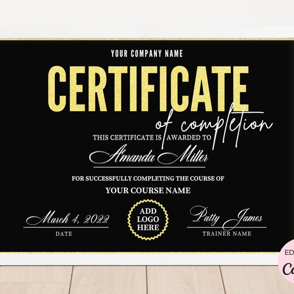 Hair / Barber Certificate Diploma Template Canva Template Gold
