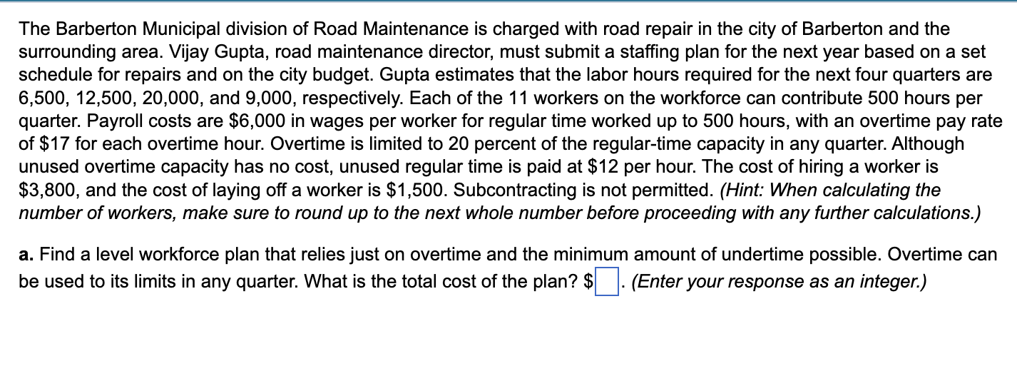 Solved The Barberton Municipal division of Road Maintenance Chegg com