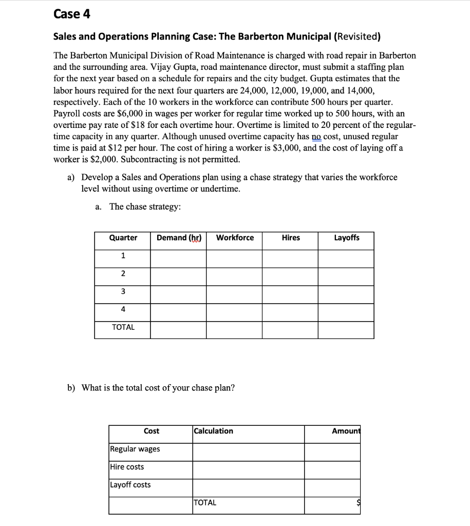 Solved Sales and Operations Planning Case: The Barberton Chegg com