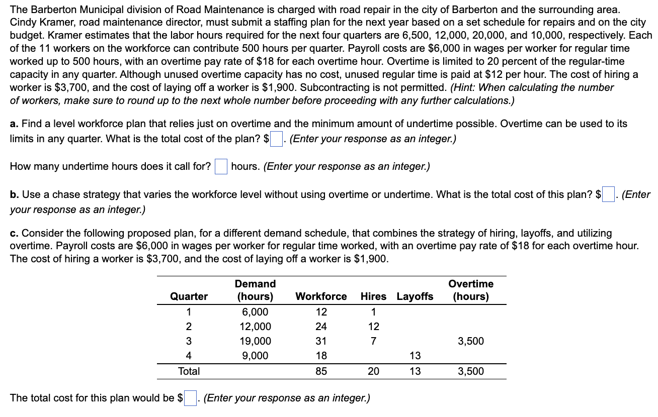 Solved The Barberton Municipal Division of Road Maintenance Chegg com