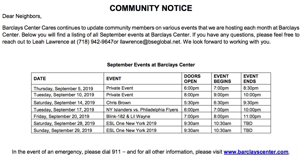 The Barclays Center event calendars: the schedule sure picks up in fall