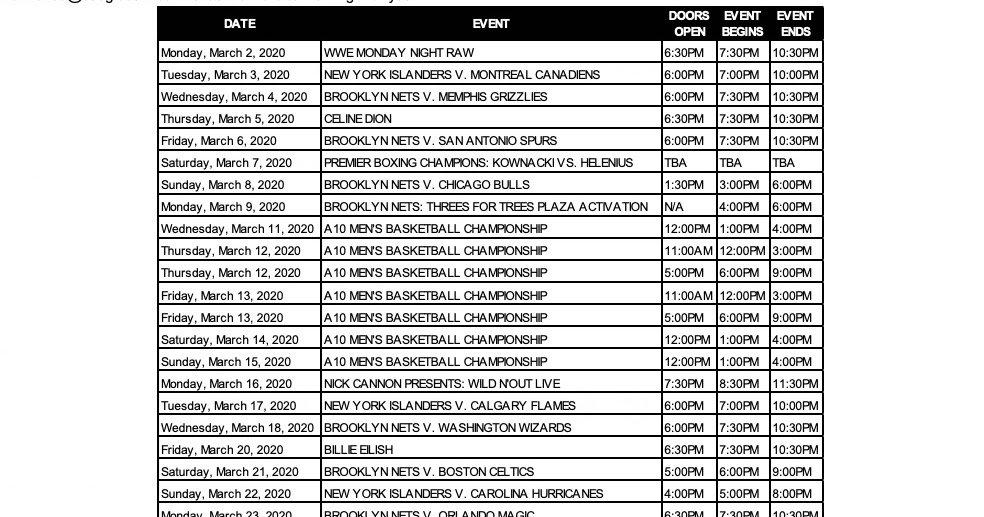 Barclays Center releases March 2020 calendar: 24 ticketed events