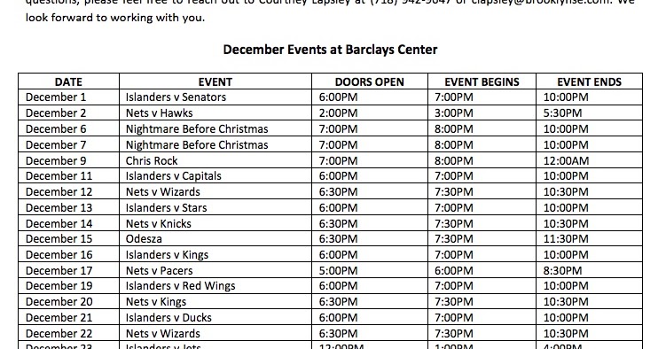 The Barclays Center event calendars for December 2014 January 2015