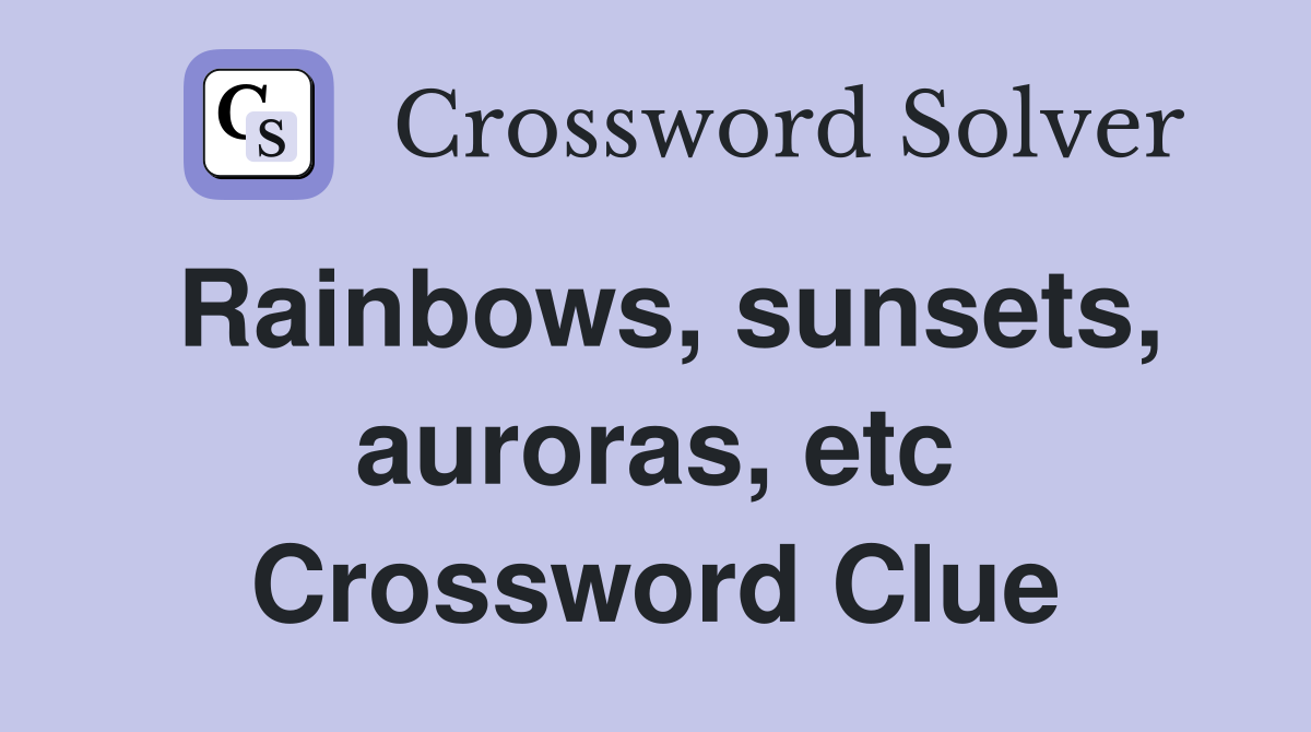 Rainbows sunsets auroras etc Crossword Clue Answers Crossword