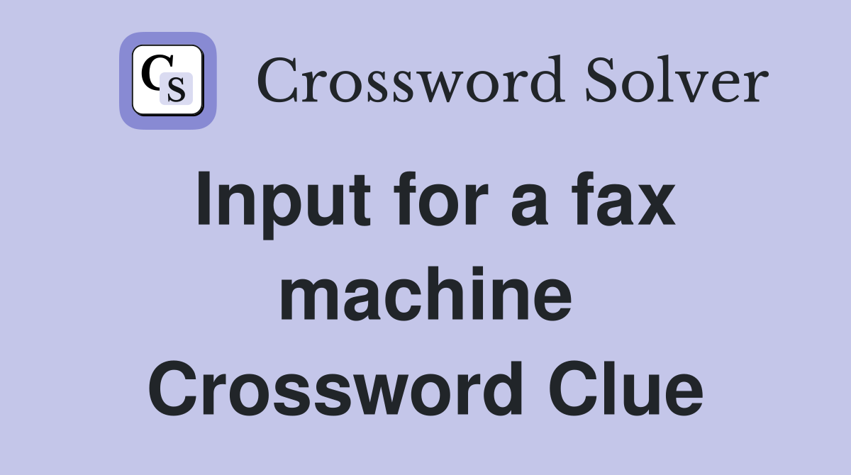 Input for a fax machine Crossword Clue Answers Crossword Solver