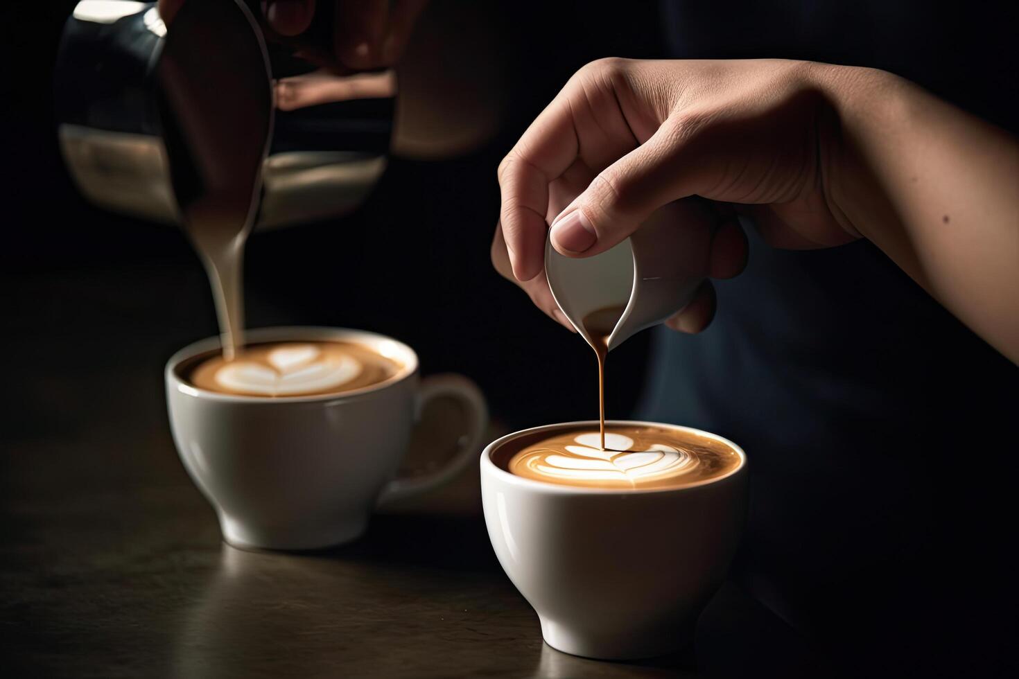 Barista making latte art coffee in coffee shop A coffee cup in a close