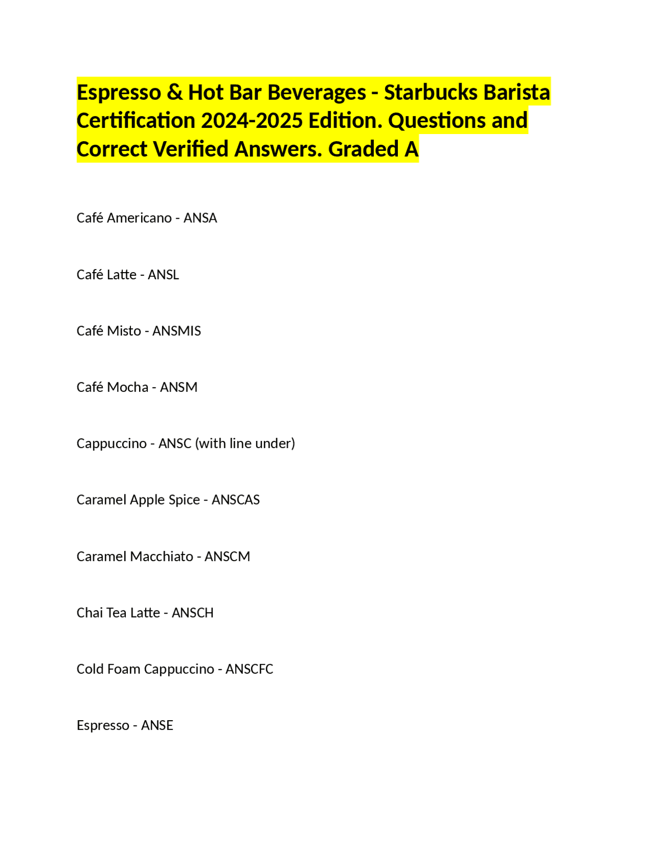 STARBUCKS BARISTA CERTIFICATION EXAM QUESTIONS AND ANSWERS Barista