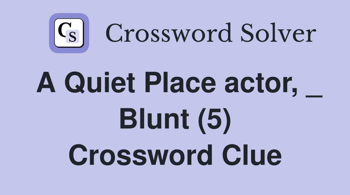 A Quiet Place actor Blunt (5) Crossword Clue Answers Crossword