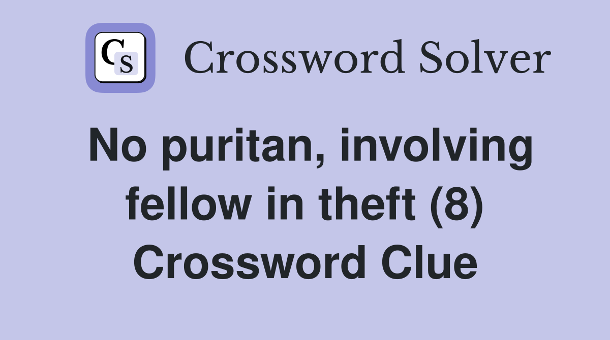 No puritan involving fellow in theft (8) Crossword Clue Answers