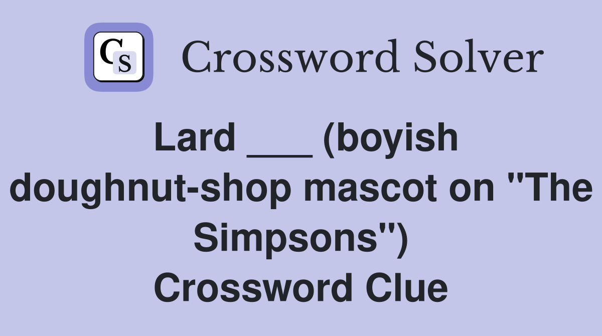 Lard (boyish doughnut shop mascot on quot The Simpsons quot ) Crossword