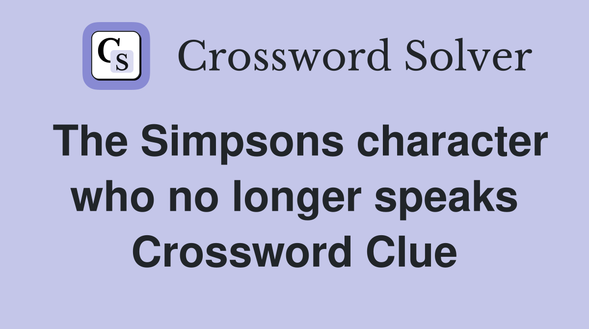 The Simpsons character who no longer speaks Crossword Clue Answers