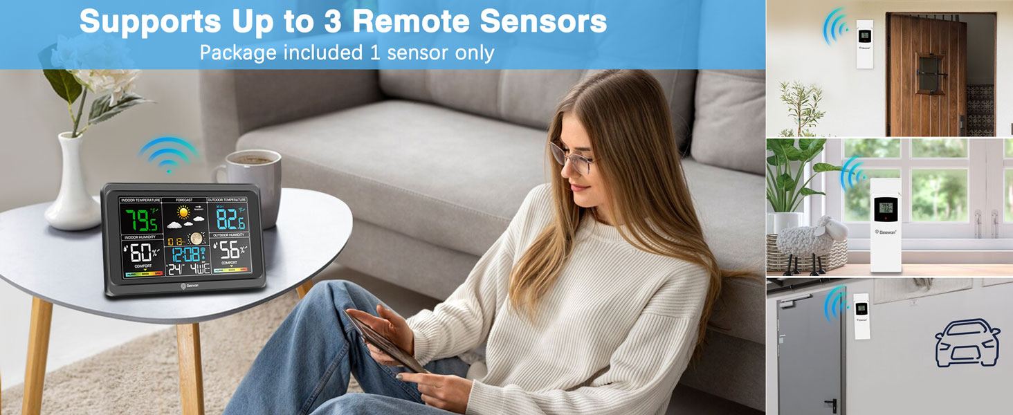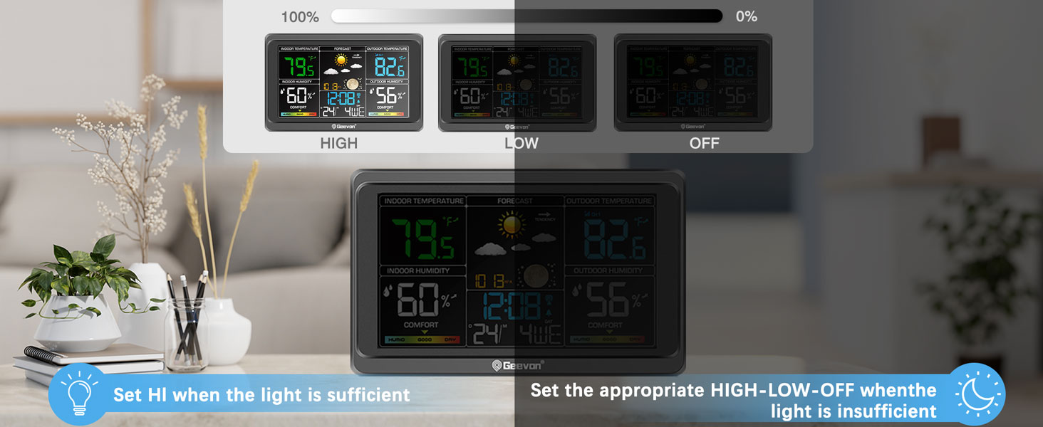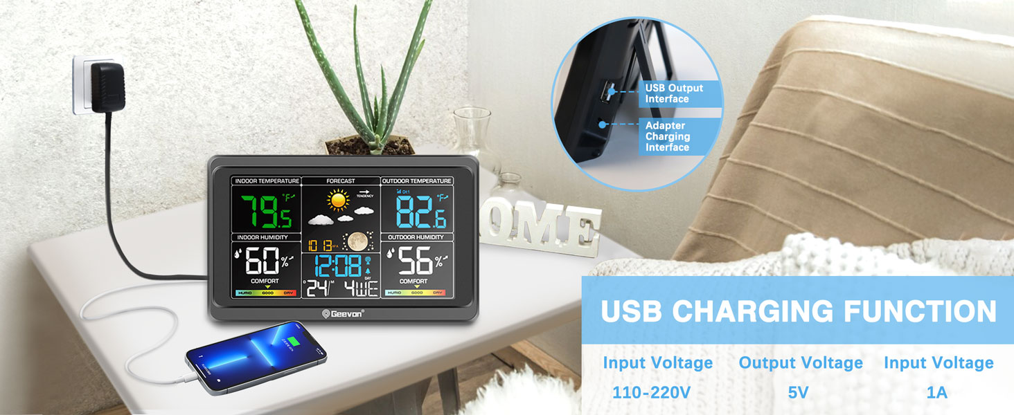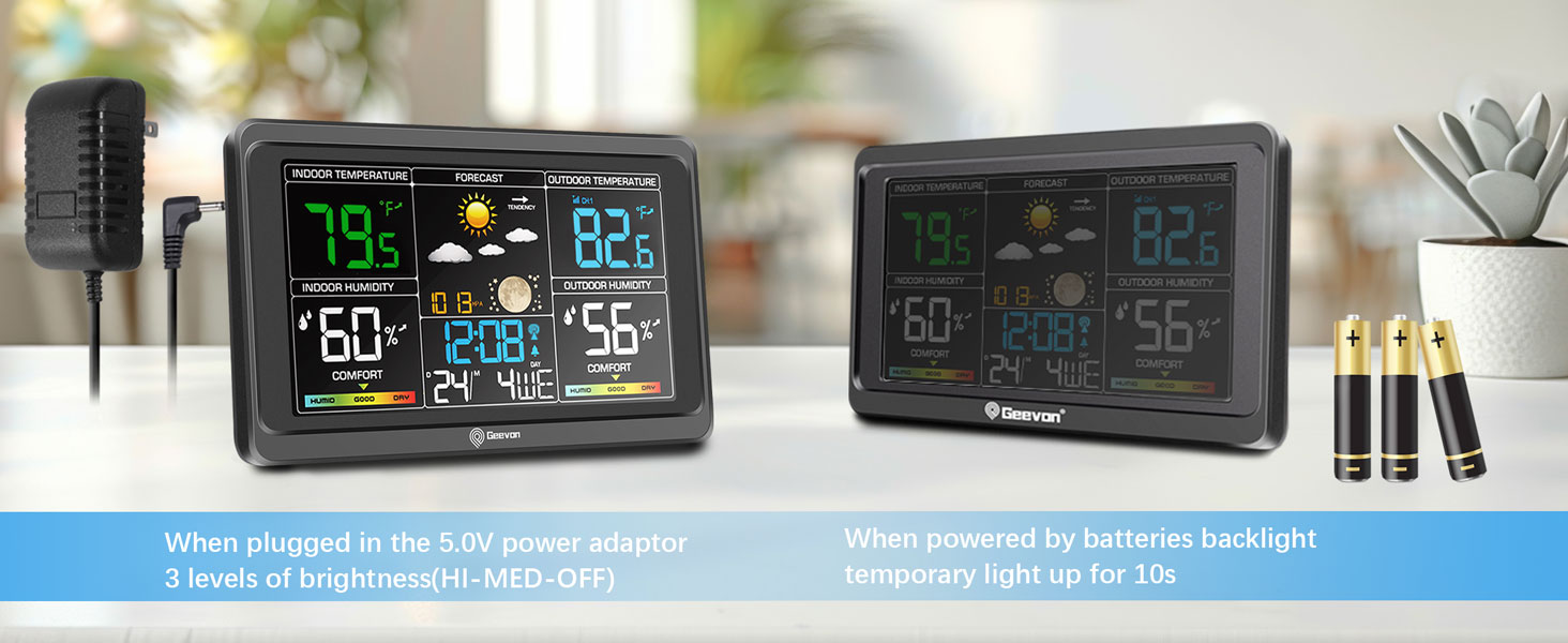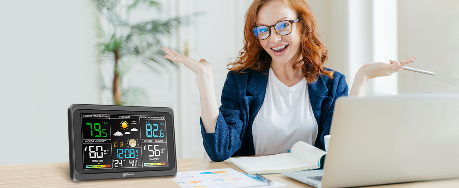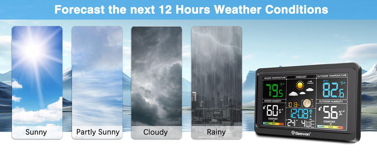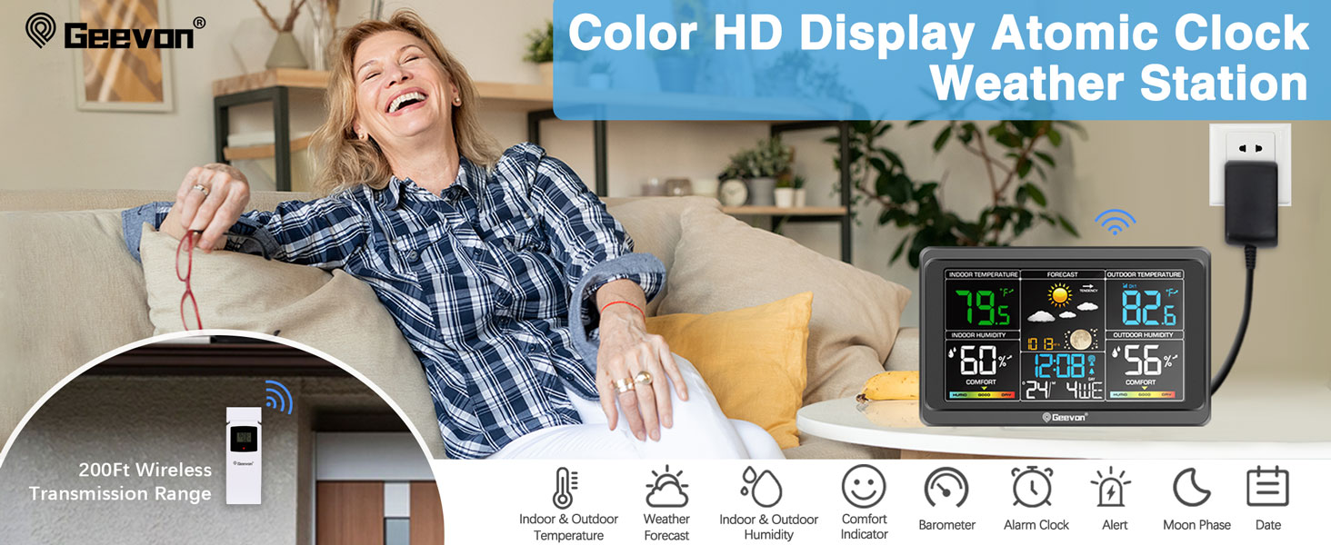 Geevon Weather Station Wireless Indoor Outdoor Thermometer Color