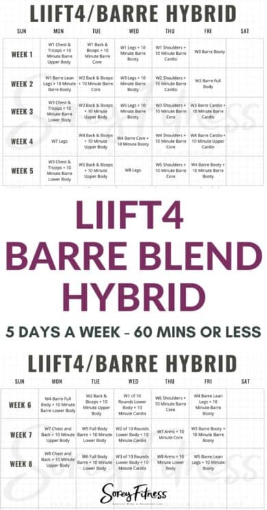 LIIFT4 Barre Blend Hybrid Calendar Beachbody workouts Cardio barre