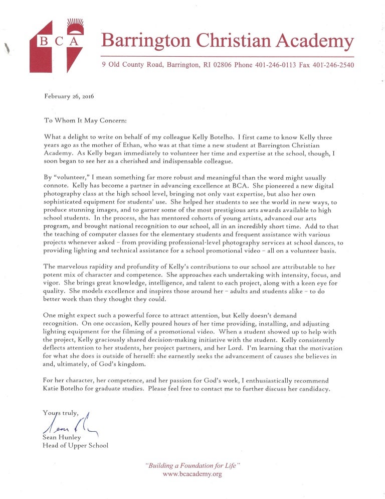 Kelly Recommendation Letter Barrington Christian Academy