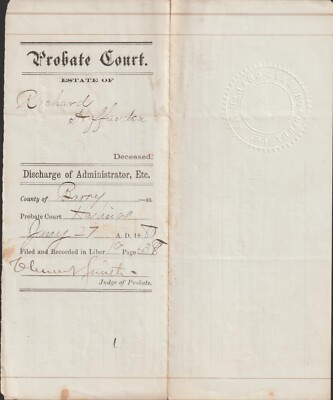 1880 Probate Court Estate of R Haffanden Hastings Michigan Barry County