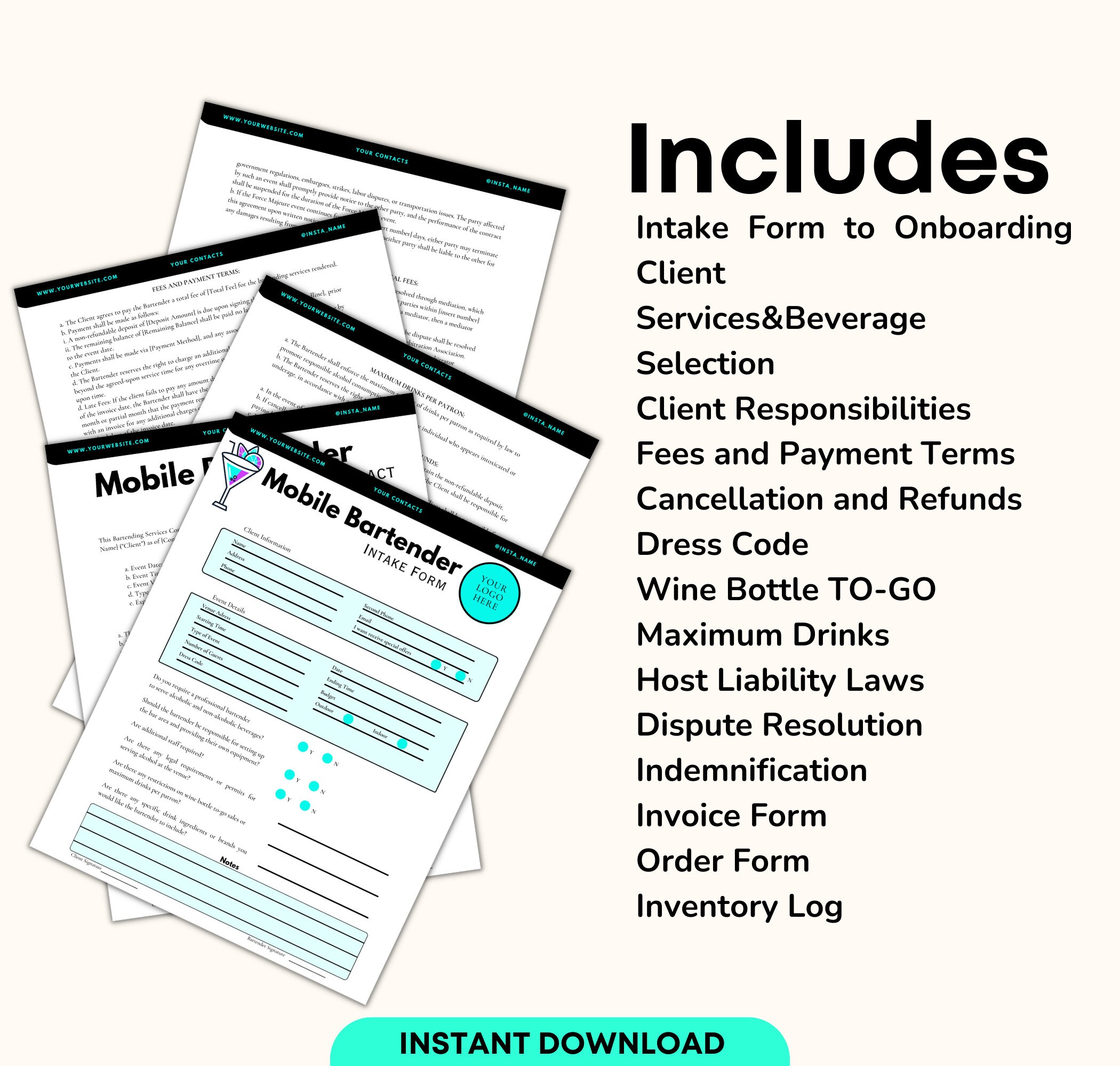 Editable MOBILE BARTENDER Contract Template THOROUGH 8 Pages Ultra