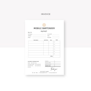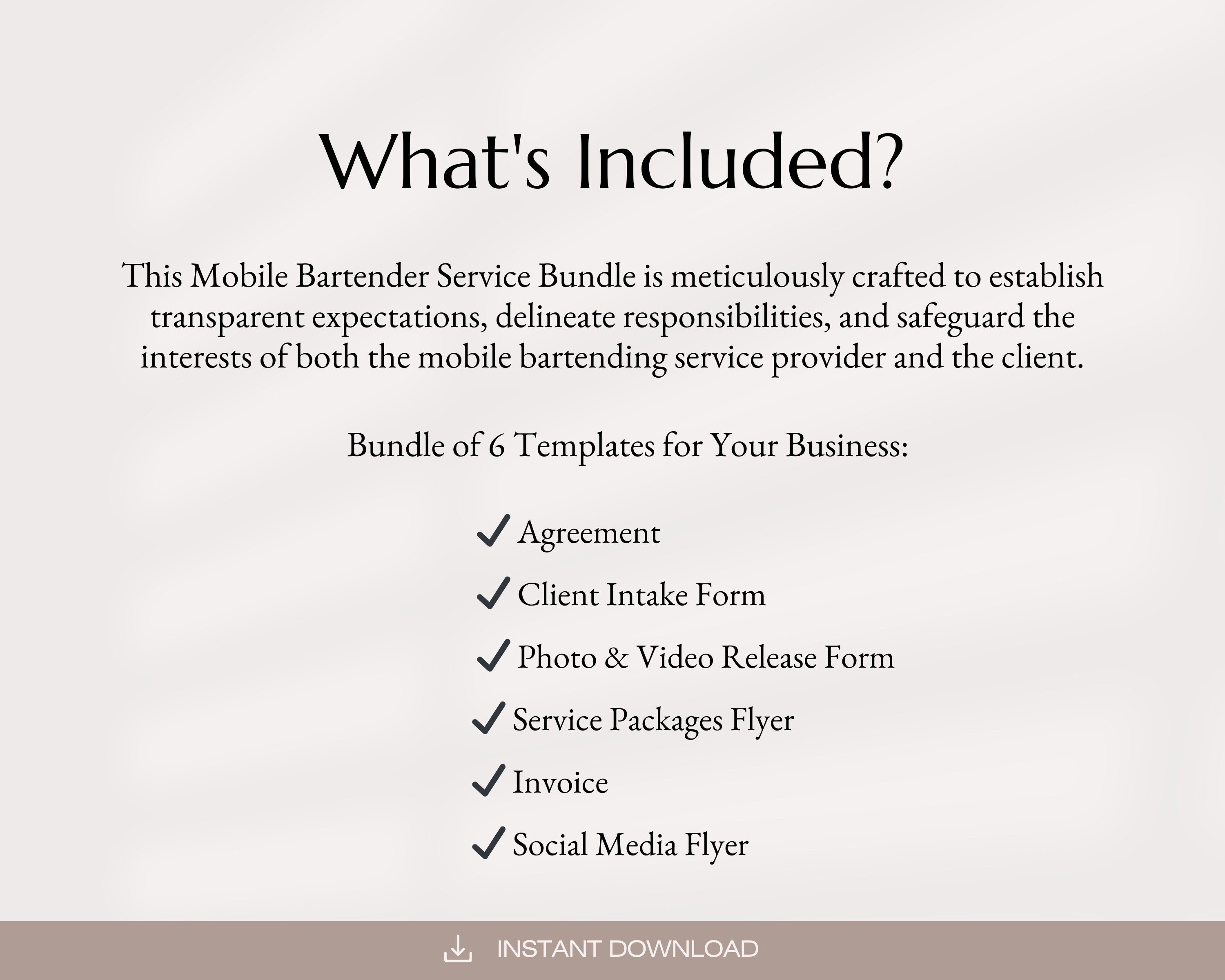 Mobile Bar Contract Bundle Bartender Service Agreement Bartending