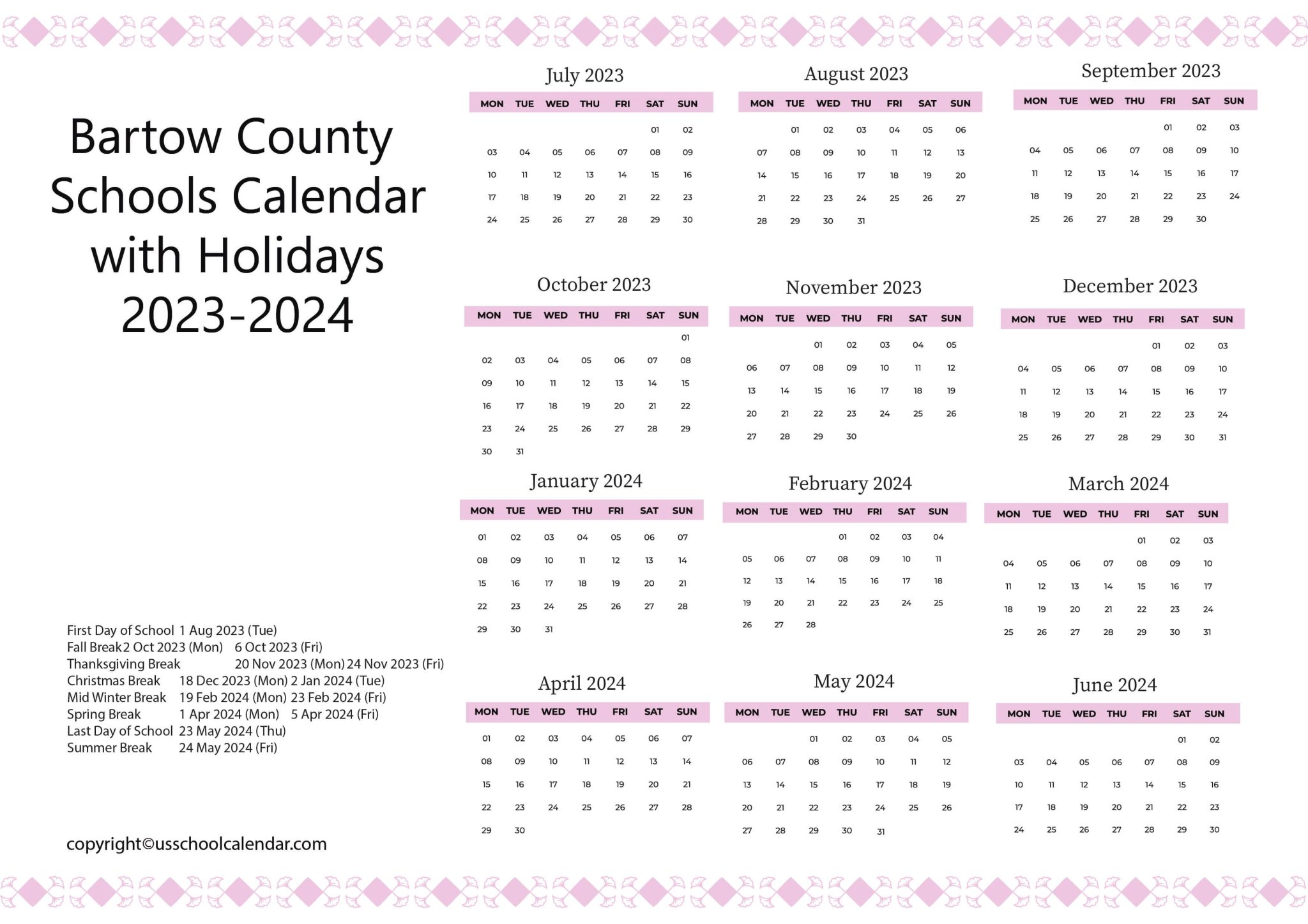 Bartow County School Calendar 2023 2024 My School District Calendar