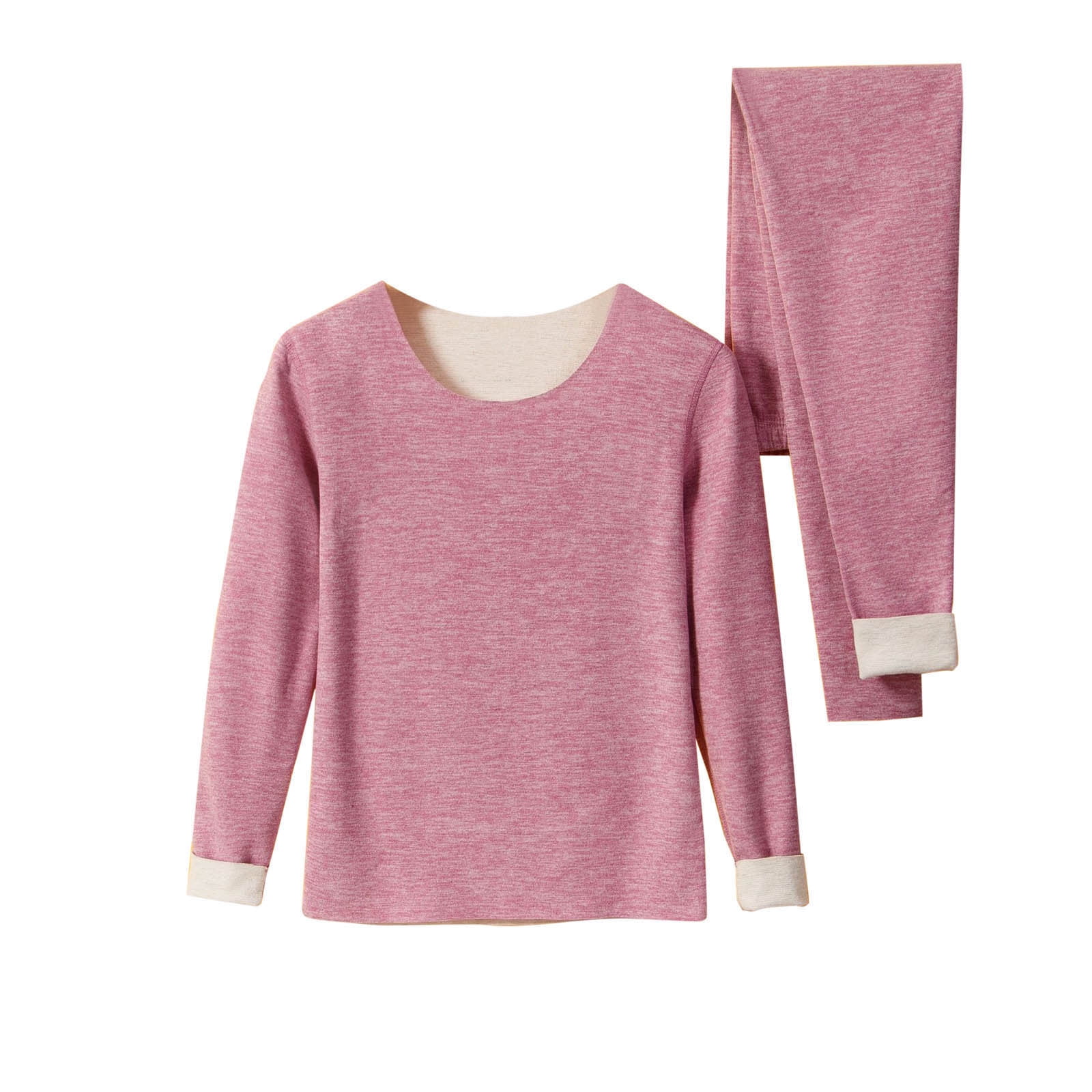 Riecok Womens Base Layer Set Seamless Round Neck Solid Color High