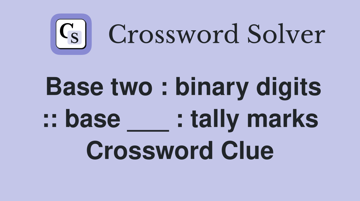 Base two : binary digits :: base : tally marks Crossword Clue