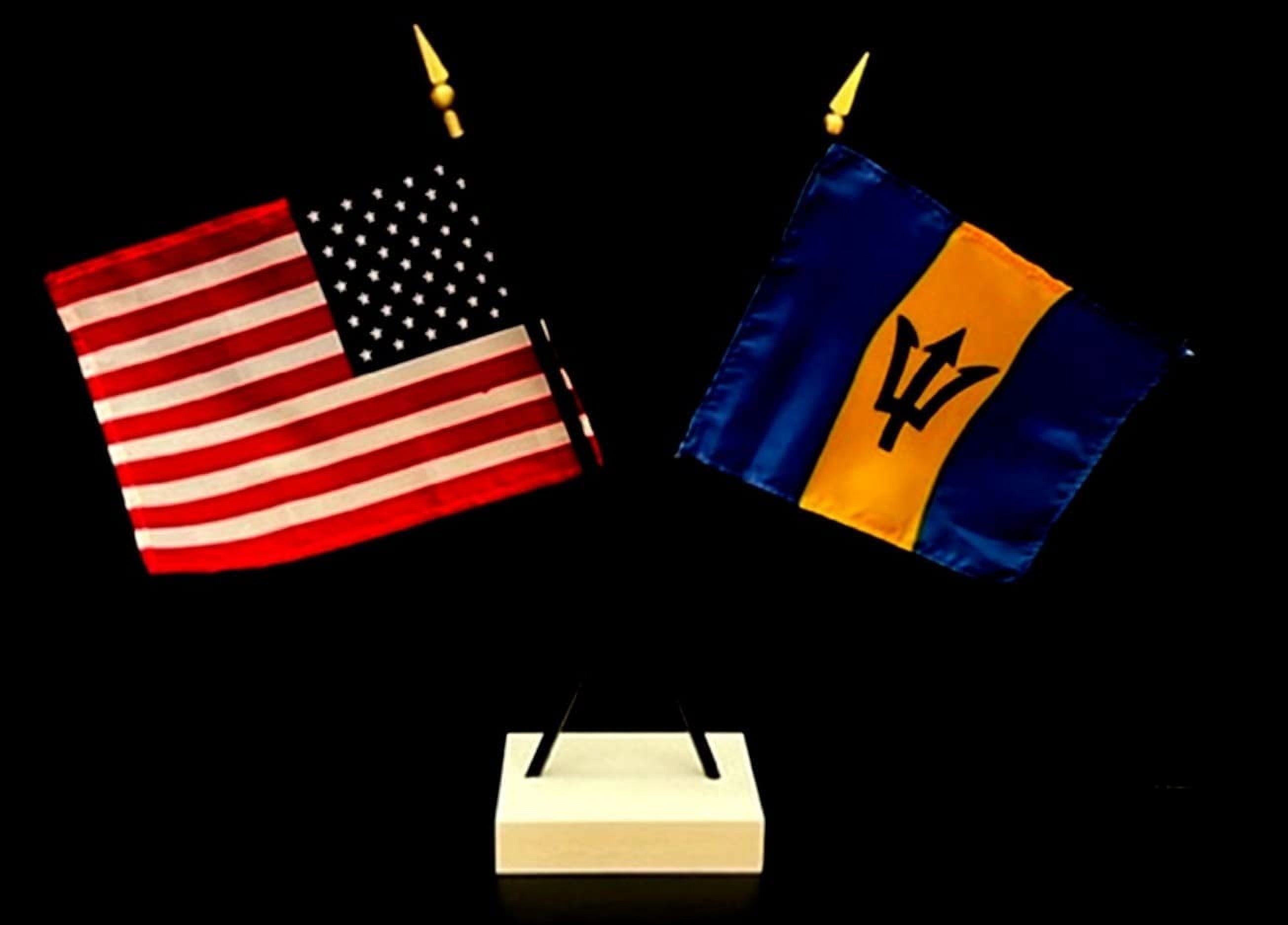 Barbados Desk Flag Set Contains One USA and One Country Flag with a